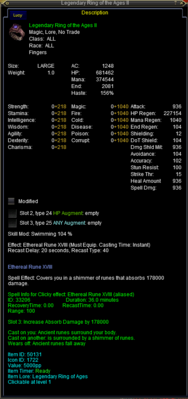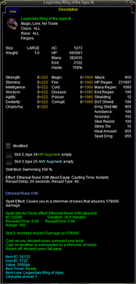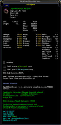 It is also possible to remake your Ring of the Ages back to **Rank 1000** after creating your Level I **Legendary Ring of the Ages**, if you have the AAs.