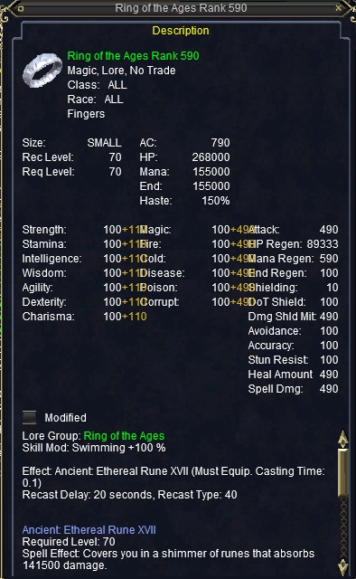 NOTE - As of May 5th, 2016, Ring of the Ages now have Level Required and Level Recommended. It's important that you take note of that before you upgrade the ring further.