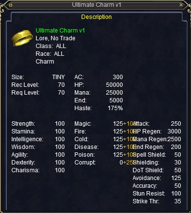 To make Ultimate Charm v1, you need to combine level 50 of each of Sorcerer's Charm, Brawler's Charm, Oracle's Charm, and Guardian's Charm in your magic box.